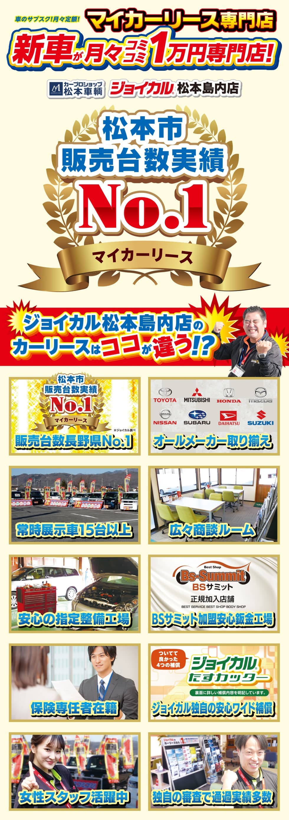 私たち『松本車輌』は、車の販売店というよりは、「カーライフの負担の軽減」を提供しているお店です。